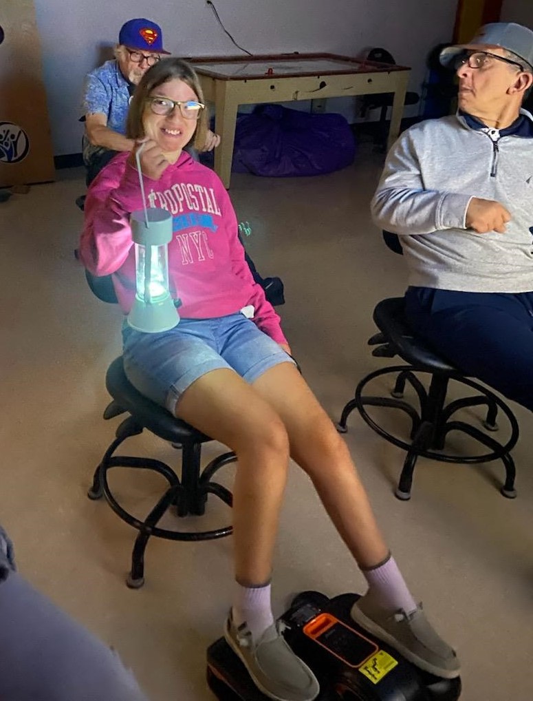 The new equipment is already making an impact. The Adult Day Services Program participants recently decided to “take a bike ride”—but it wasn’t your typical ride! Using a 55-inch interactive Life Loop screen, the trail was brought indoors for a full sensory adventure. Thanks to the creativity of the Direct Support Professionals (DSPs), participants felt the wind with a fan, the rain with a water mister, and even the scent of the outdoors through a diffuser. When the trail grew dark, a lantern was brought along to light the way, creating an unforgettable experience that promoted both physical activity and joyful connection.